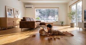 家づくりを検討し始めたばかりの方がよく抱かれるご不安ですね。ですが、匠実ジャパンの平屋ならご安心ください。「百年の家®️の基準」であるトップクラスの高気密・高断熱性能を備えているため、広い空間でも家全体の温度差がほぼゼロになります。