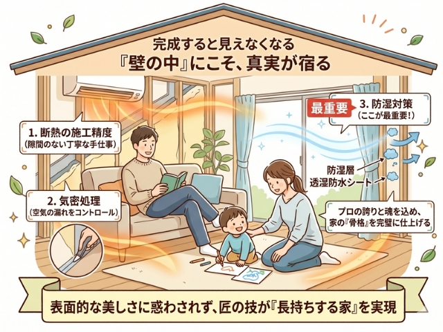 しかし、住み心地と家の寿命を決定づけるのは、完成した瞬間に魔法のように隠れてしまう「壁の中」です。